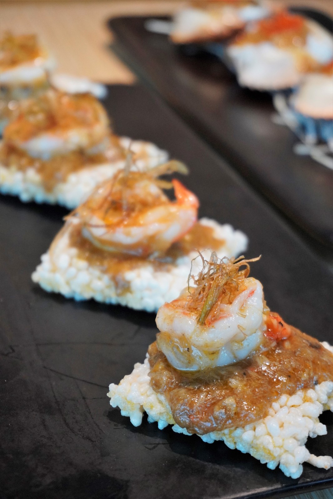 蟹粉蝦球鍋巴,2件HK$98/4件HK$188。香脆鍋巴上配上蟹粉、爽口蝦球,酥香惹味。