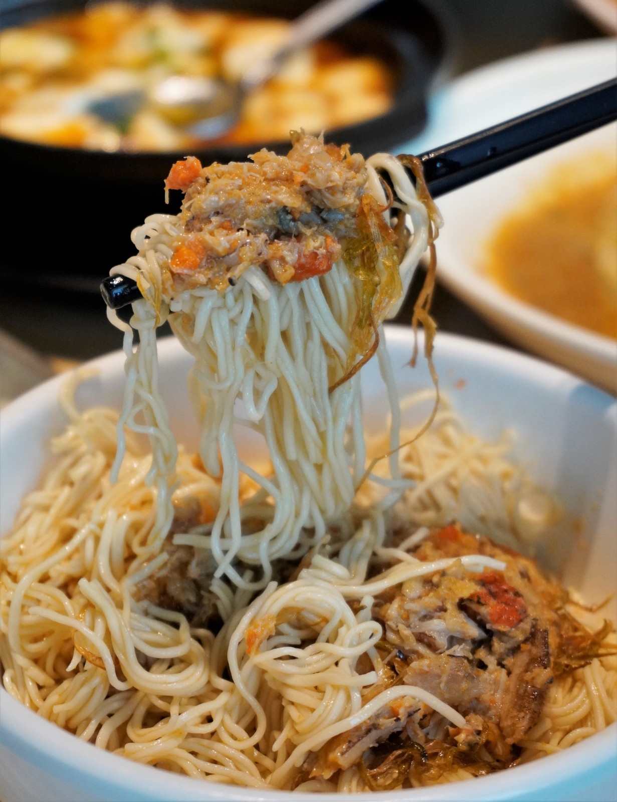 說到店舖的經典美食,不得不提小籠包,「蟹粉小籠包」內餡之蟹粉、湯凍及鮮肉均採用黃金比例配方調製、手工包製而成。一口咬開,鮮美蟹香之湯汁伴隨着甘香四溢的蟹黃於口內併發,教人欲罷不能。另一道招牌菜鍋貼也推出變奏版「蟹粉鍋貼」,生煎後外皮軟糯卻又帶有煎香的酥脆口感,肉餡配上黃金蟹粉更顯餡香湯鮮。該店的手工拉麵則是筆者的私心推介,「蟹粉拌蔥油毛細麵」用上蘭州拉麵中最幼細一號麵條毛細麵,軟綿彈牙,每條麵條沾滿蟹粉及即炸蔥油,每一口都讓人滿足。