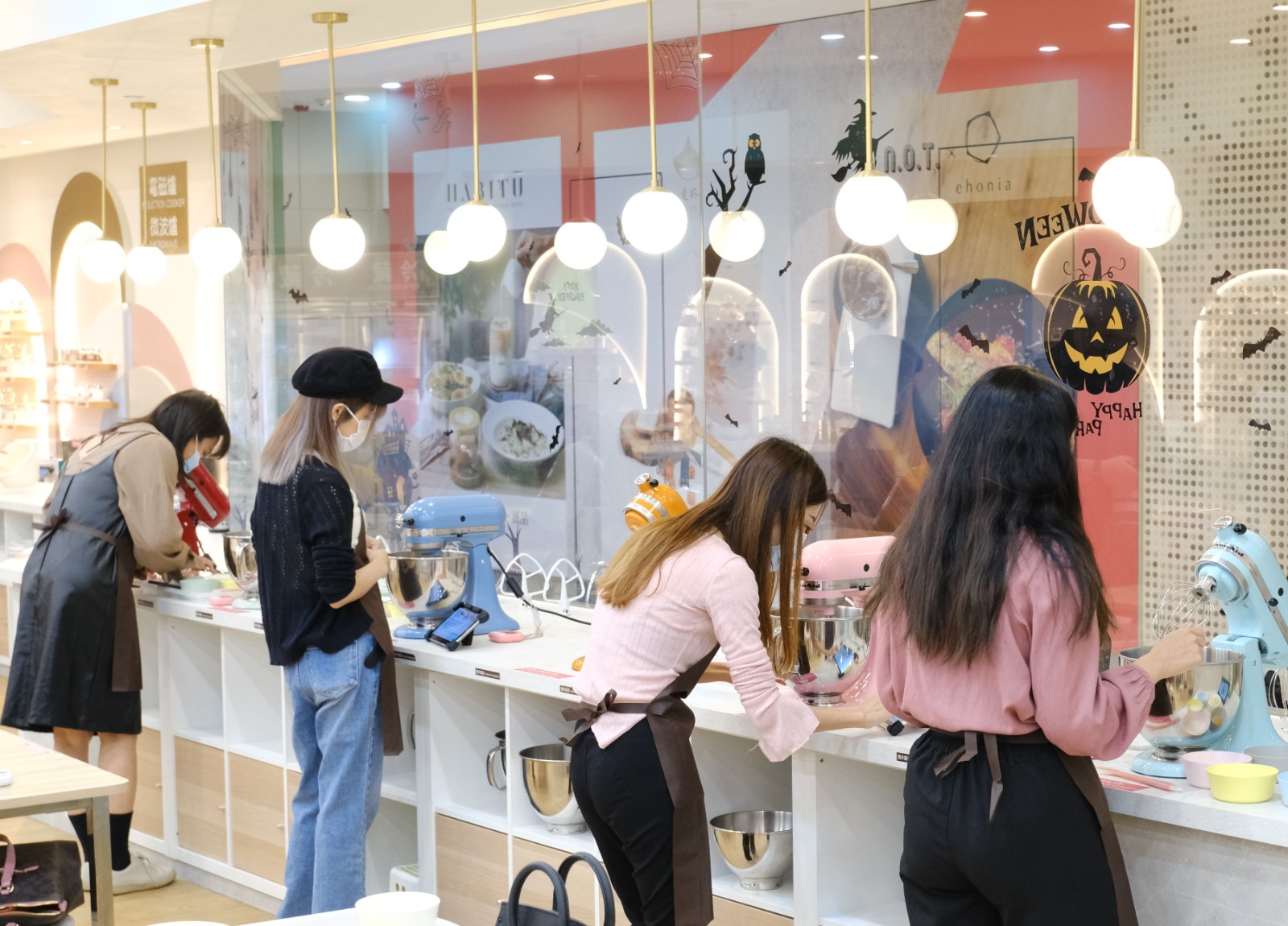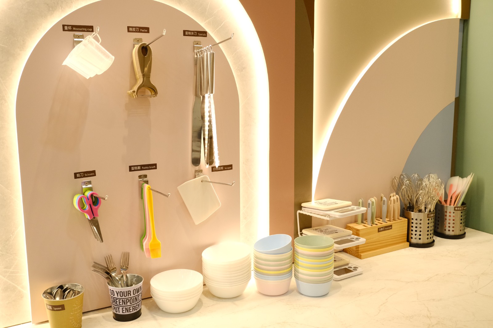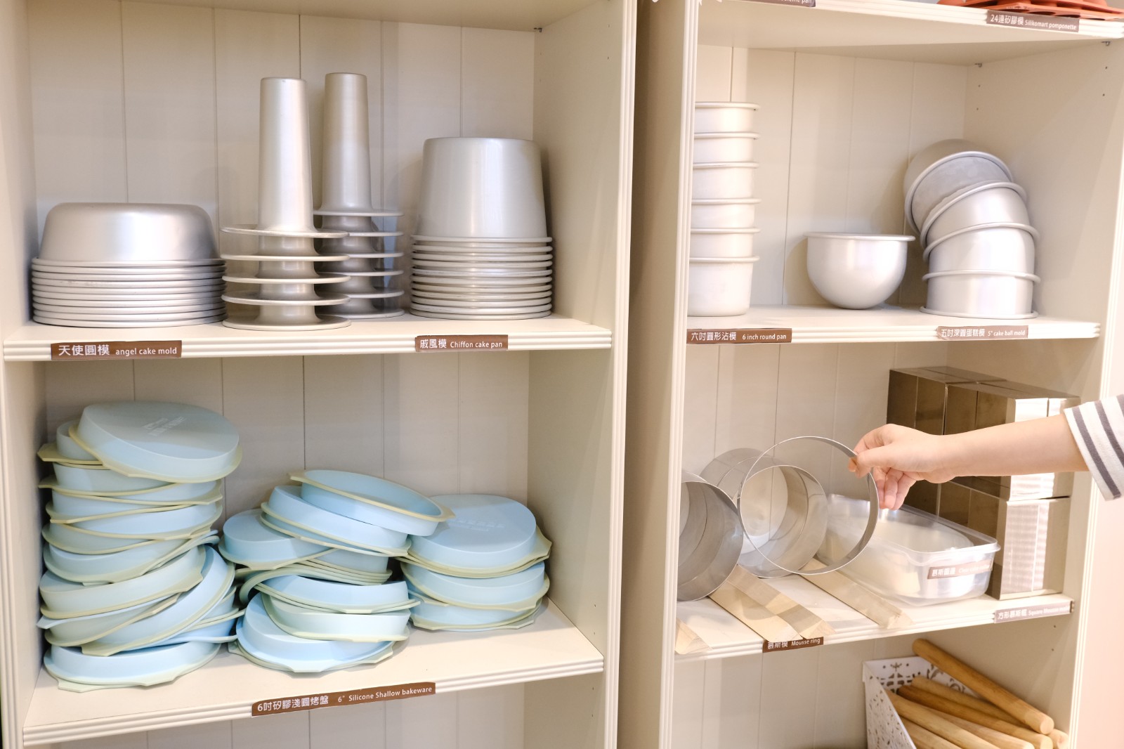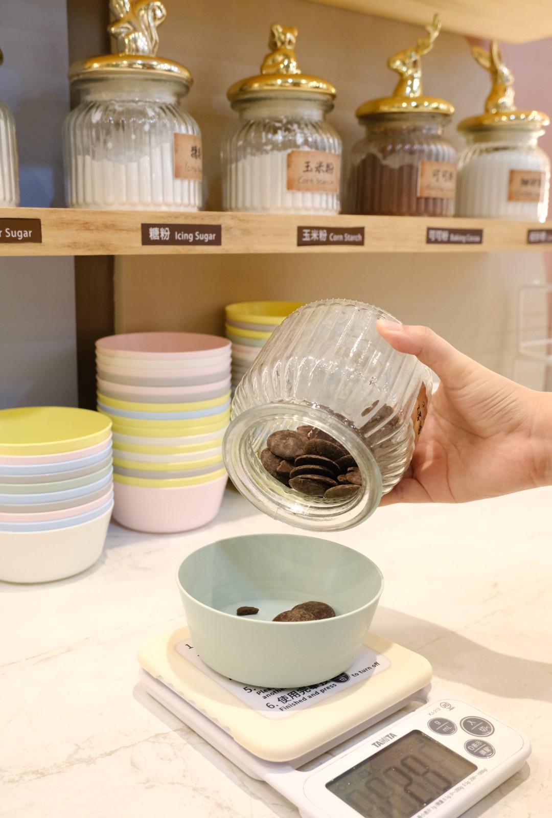 店內分為工作枱、食材區、攪拌區、電磁爐區、模具區、冷藏區、焗爐區,所需使用的工具和食材都整齊擺放,一目了然。店內提供逾50款食譜,包括蛋糕、曲奇餅、瑪德蓮、杯裝蛋糕等,並詳細列明材料、難易度、製作所需時間等資訊,節日更會有應節甜品食譜推出,適合不同需要客人。製作期間及完成後也不用清洗器具,清潔區的職員會幫忙清洗,讓客人更專注烘焙,適合親子、情侶或朋友一同參與! (記者:Janice 部分圖片:Karena)