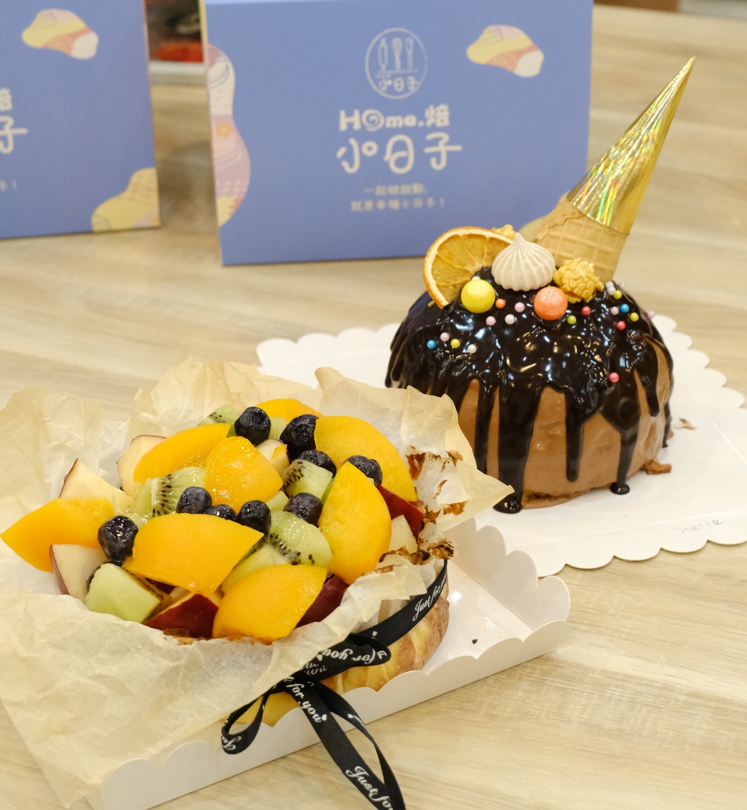 店內提供多款打卡蛋糕食譜,包括「水果奶霜巴斯克」(左)、「WOW!冰淇淋掉了」(右)。