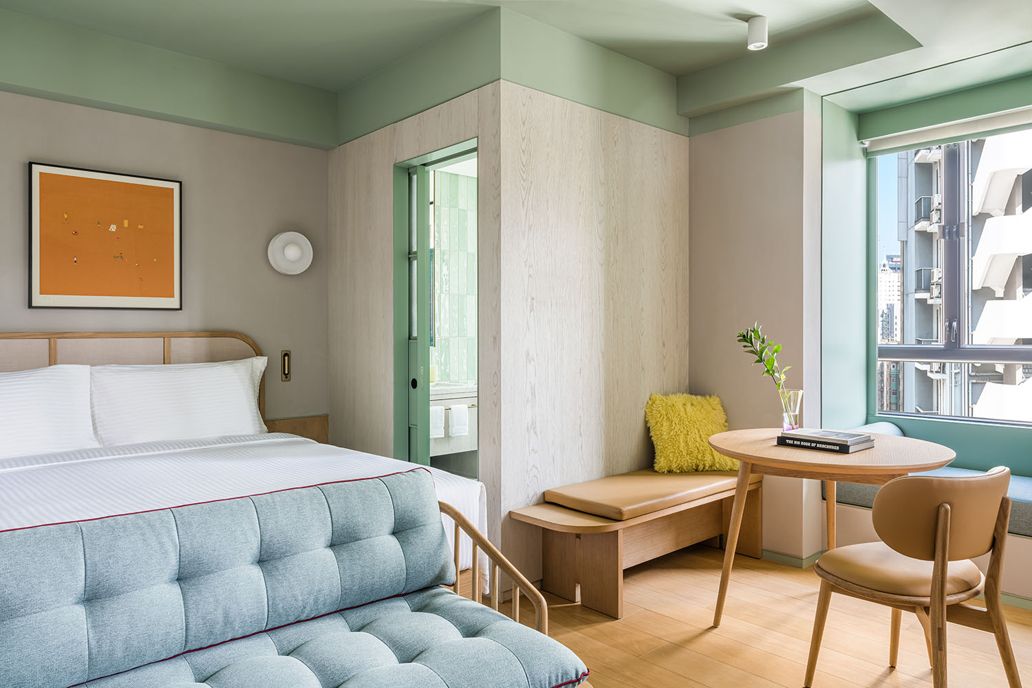入住價格相宜,裝潢風格糅合時尚的現代設計和簡約元素。建築師和室內設計師Linehouse通過設計將平平無奇的場地轉化為富表現力的空間,客房內淺色的牆壁、原木天花板、赭色地磚和彩色瓷磚等均彰顯了品牌時尚、簡約與活力的理念,並提供實用、設計精緻的居所。與傳統酒店不同,設有促進交流的共享空間供小憩、工作和玩樂,或是在忙碌了一天後靜享片刻清靜,亦能欣賞豐富的藝術作品,包括柏林藝術家Josephine Rais在香港創作的極富衝擊力的彩色戶外畫作。