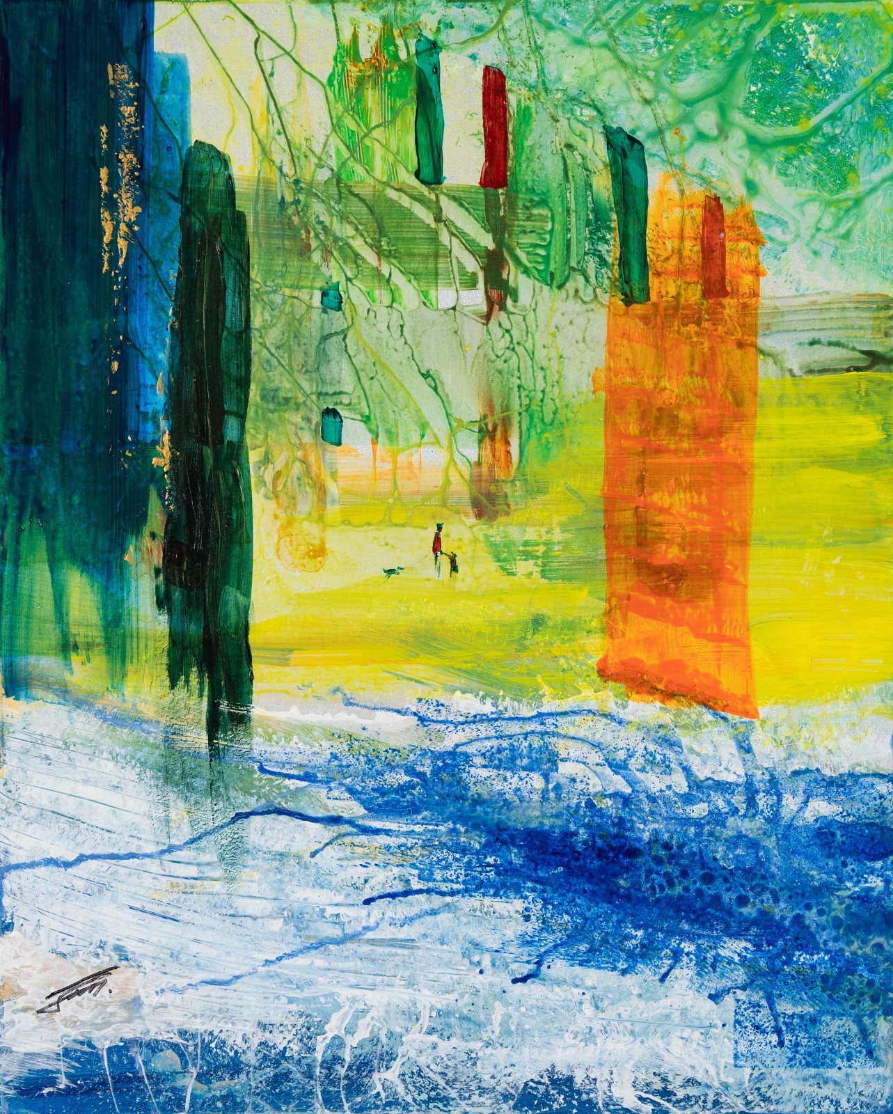 色彩的豐富表現力是丙烯畫的重要特徵,也是畫家傳達情感的方式,畫面的色調反映的情感和意境,正是人們對顏色的心理感受所產生的聯想,如熱烈、寧靜、喜悅、悲傷等,它既是主觀與客觀的統一,又是內心經驗的表達媒介。四季的景色是自然的饋贈,作者用純粹的色彩來概括季節的特徵,畫面被四種顏色分隔成四季,但顏色之間又相互包容,如同四季的更替。明確的色調帶給人強烈的感受,具有感染力,作者的情感通過色彩傳遞到了觀眾的眼前,架起共鳴的橋樑。