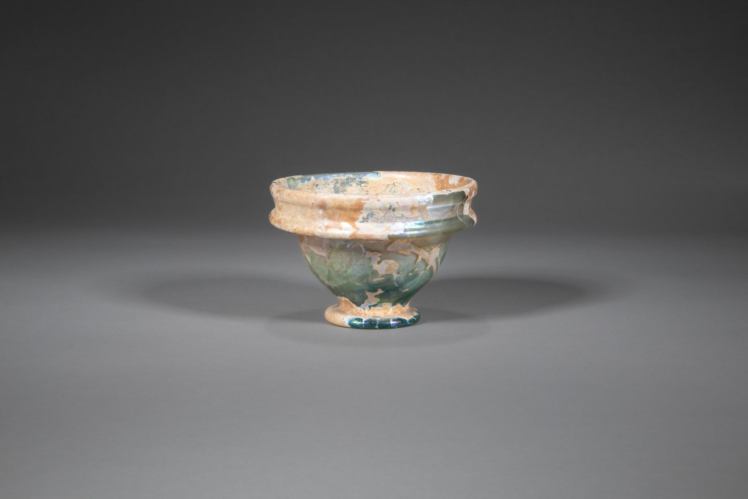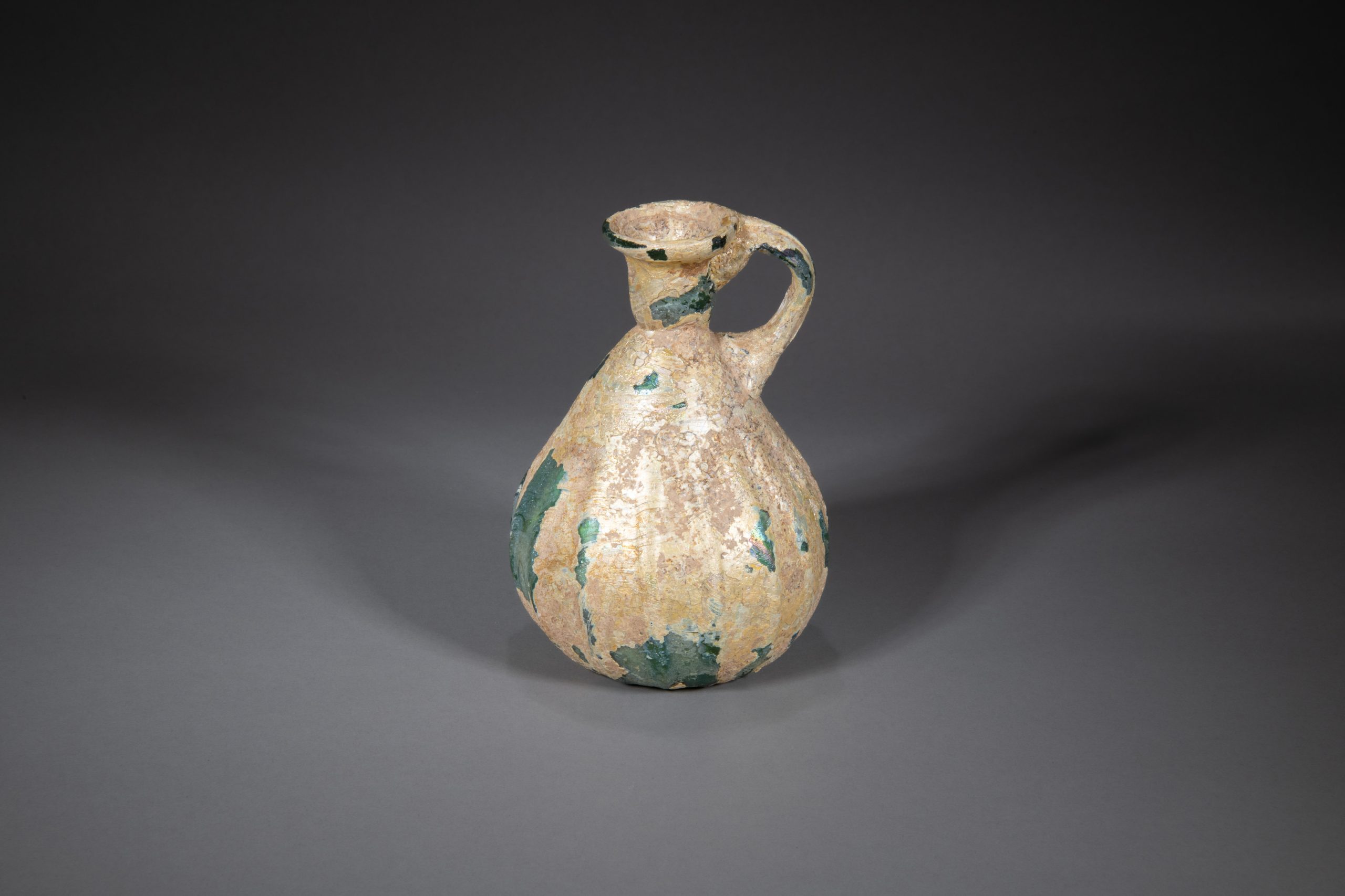 玻璃吹製技術於公元前一世紀由羅馬帝國的腓尼基人建立,是次展品之形制,卻與上溯至公元一世紀敘羅巴勒斯坦地區之器形風格,及公元六世紀之伊斯蘭波斯瓷器及金屬器皿的 樣式存在關聯,為玻璃製作技術與域外裝飾風格東漸提供重要例證。展品體現了絲路孕育之 技藝交流軌跡,及其繁茂昌盛的情況,令觀看者進一步認識「絲綢之路」。(記者:Janice 圖片:香港大學美術博物館)