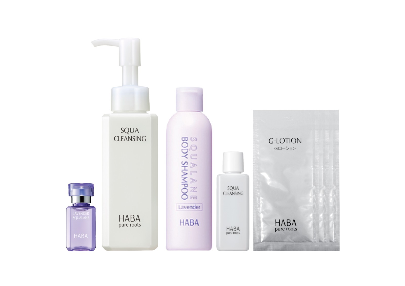 恬靜花香滋潤肌膚組合,HK$398(價值HK$825)。鯊烯美肌清油(薰衣草香) 15ml、鯊烯精華卸妝油 20ml、鯊烯精華卸妝油 120ml、薰衣草滋潤沐浴乳 200ml、G露水7ml x 3pcs。