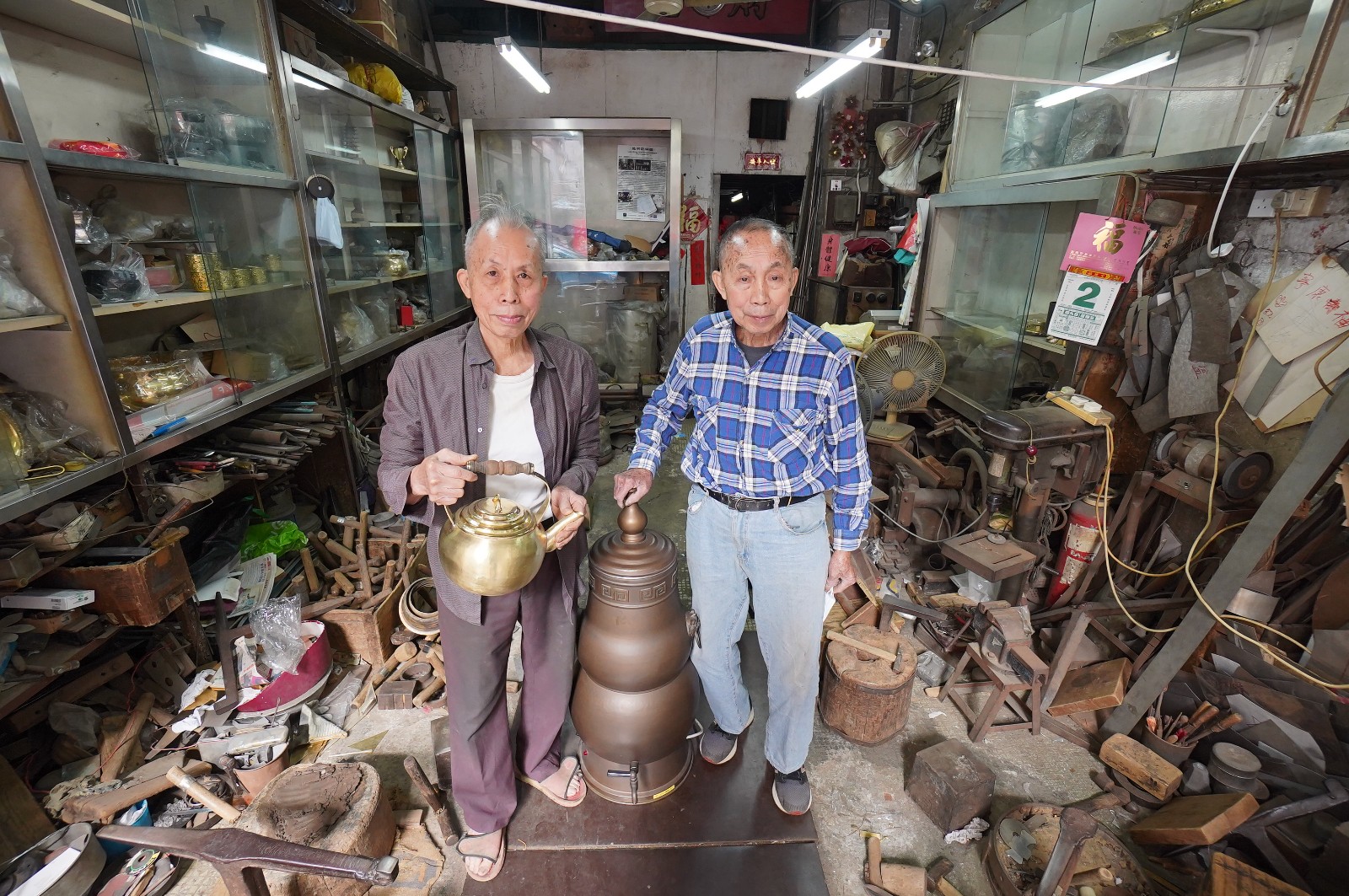 常說「兄弟同心,其利斷金」,陸強才(左)和陸樹才(右)兩兄弟年過八十仍日復日工作,讓記者不得不敬佩二人對保存手藝的「銅心」。