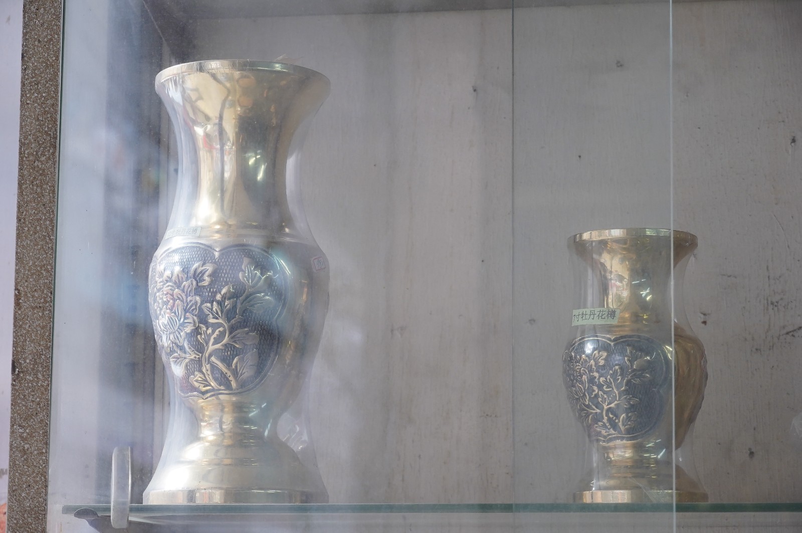 店內的銅器大多已被客人買走,只剩下銅製花瓶和一些銅製的拜神用品,客人想購買只能預訂。