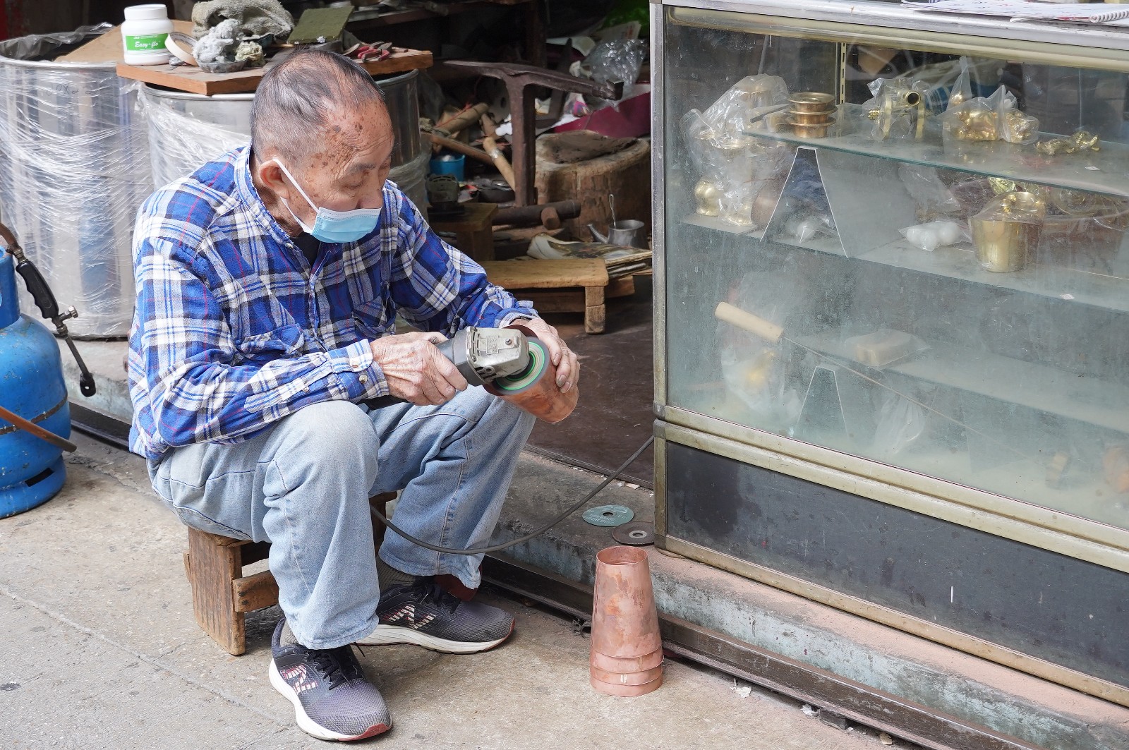「炳記銅器」屹立油麻地逾半世紀,是香港絕無僅有的手製銅器店。