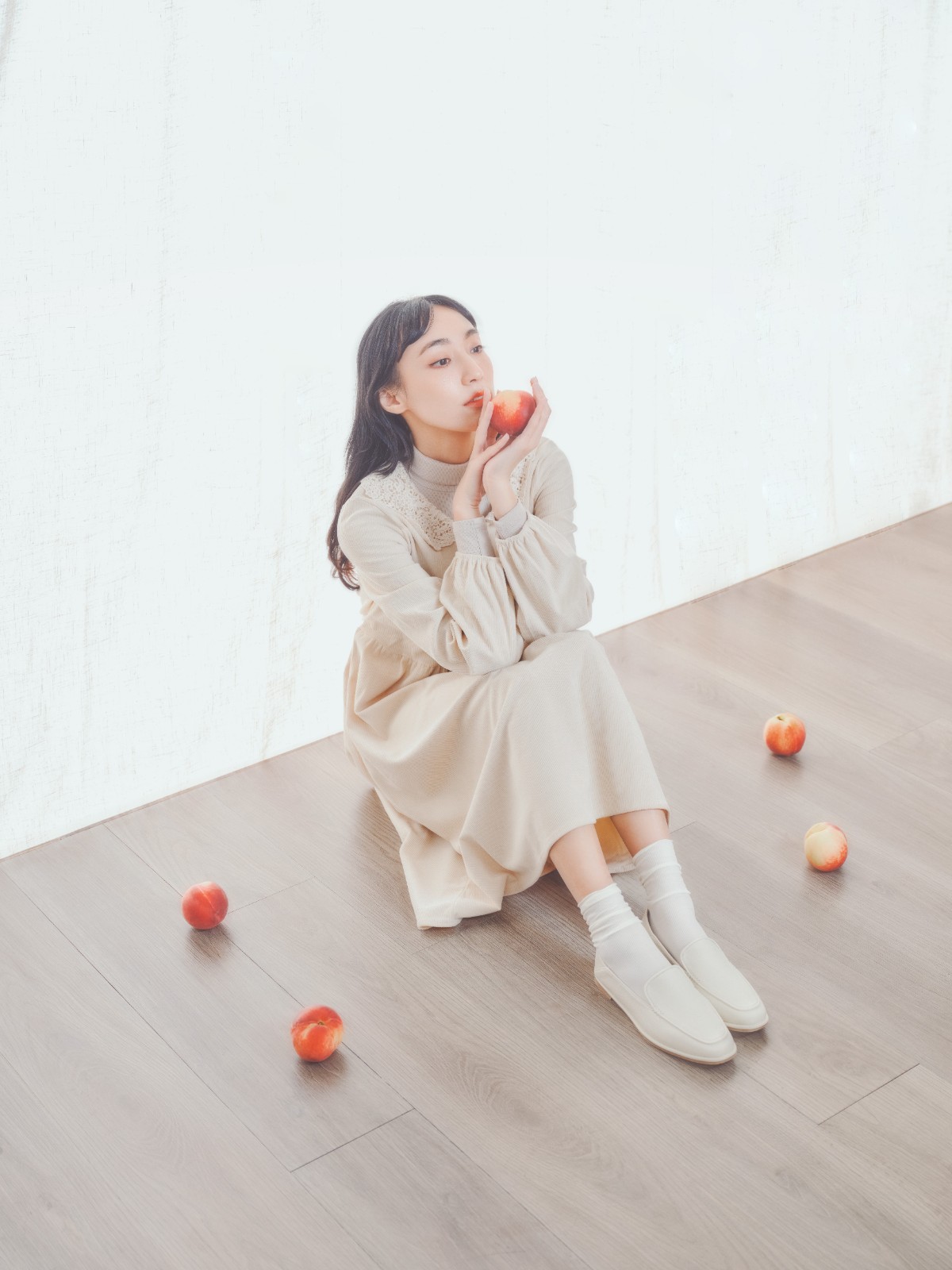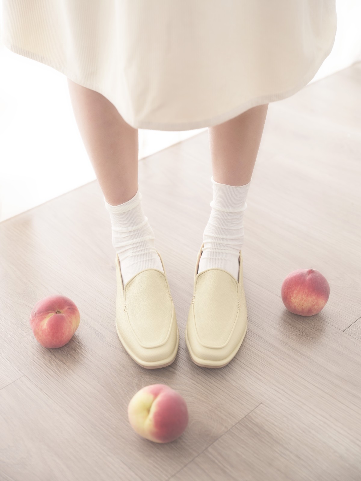 杏色樂福鞋富優雅氣質,建議搭配淺色系服飾,簡約大方。