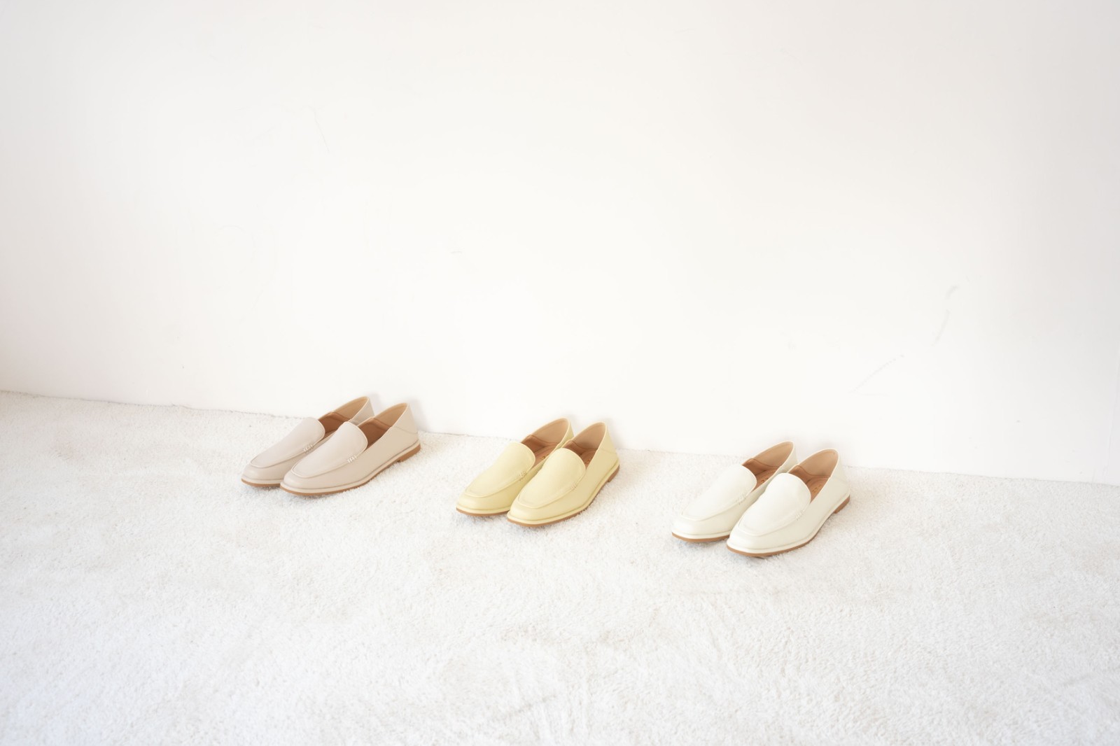 Kirby Loafers,HK$590。備有米白色(左)、鵝蛋黃色(中)、杏色(右)可供選擇。