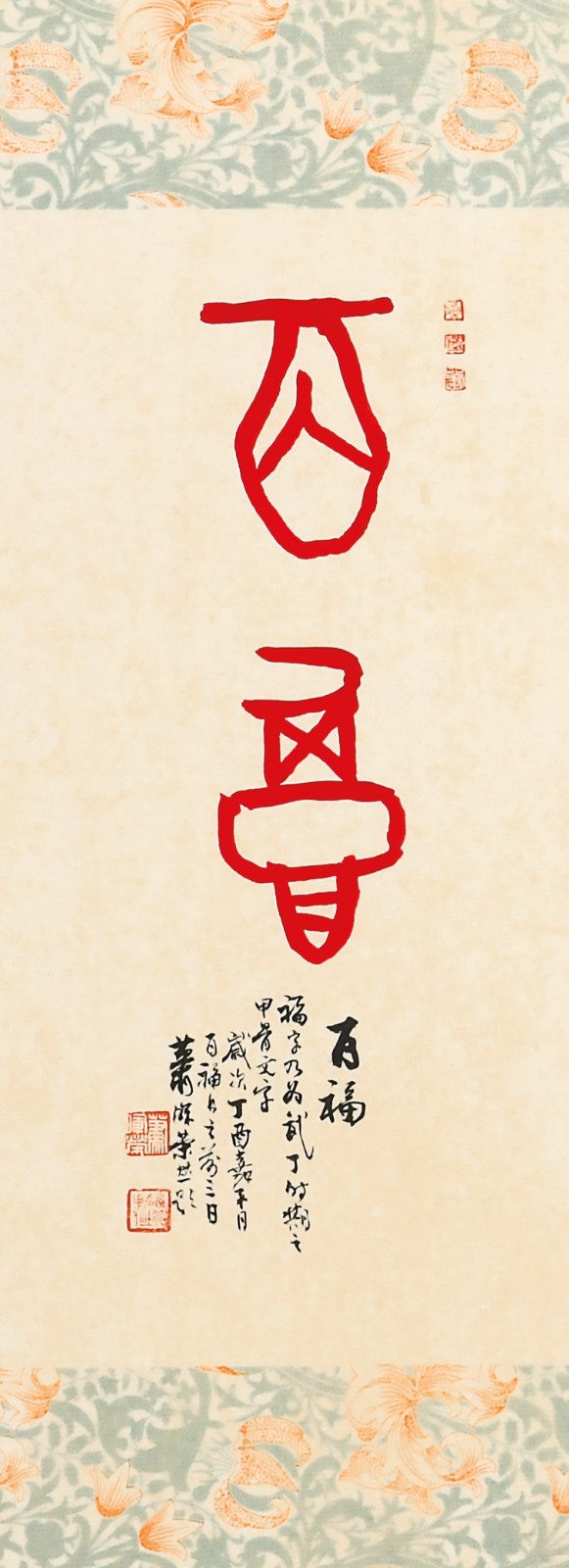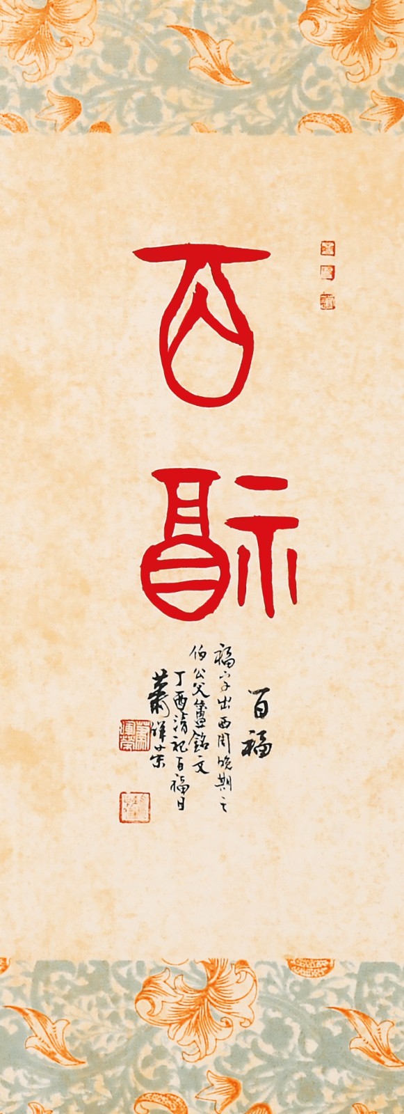 蕭暉榮作品 《百福》(金文), 設色卡紙,33x12cm,2017年。