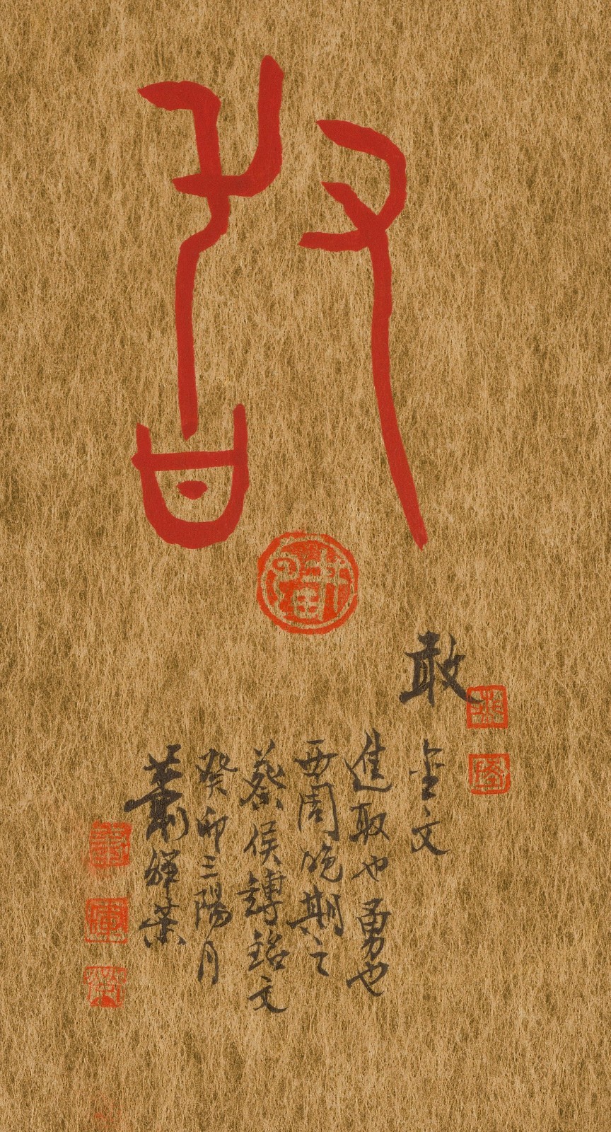 蕭暉榮作品《敢》(西周早期金文),設色金箋, 2023年作。