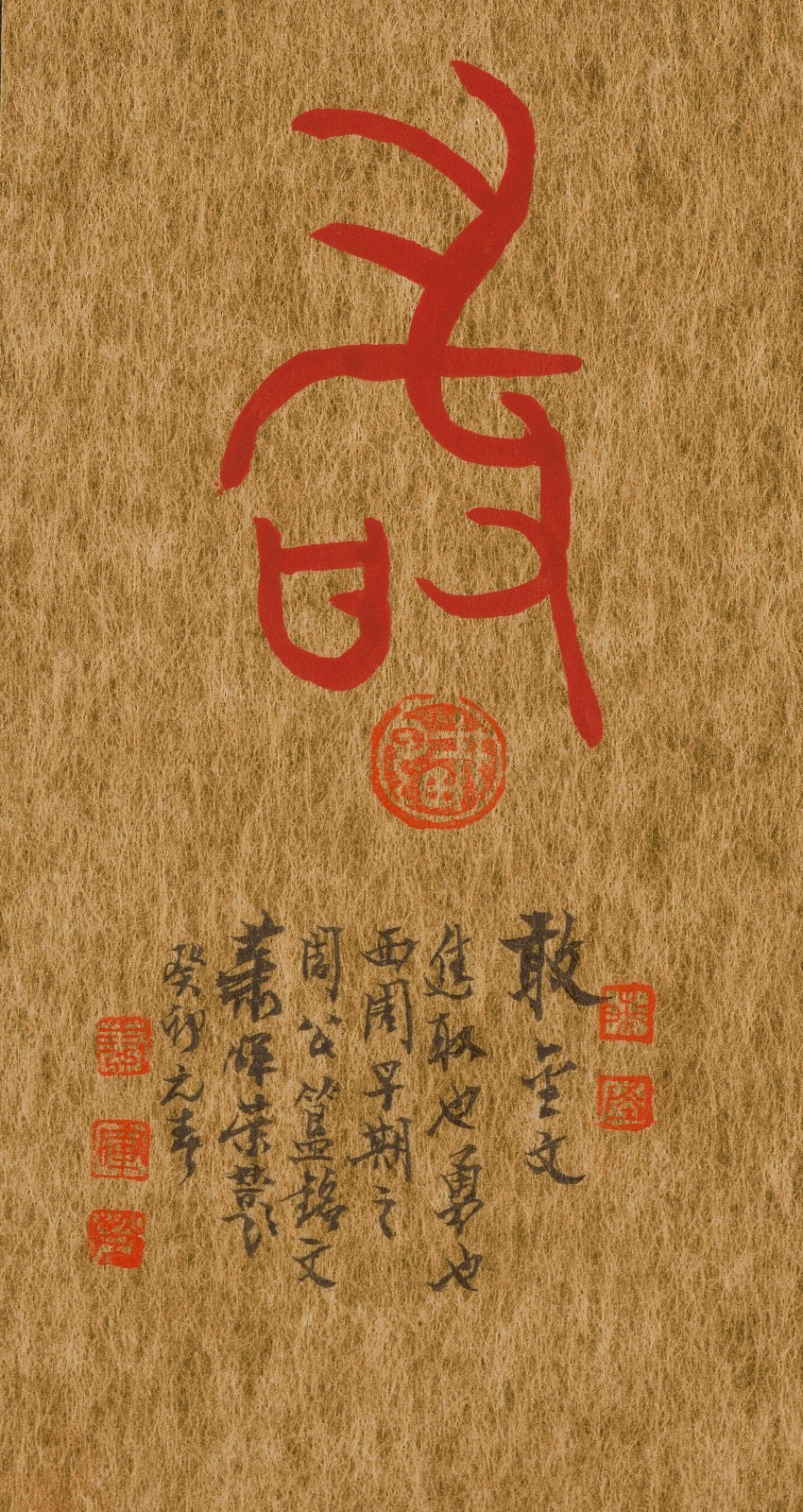 蕭教授潛心研習金文多年,兼善各時期的書風,所書凝重質樸,敦厚圓潤,獨具一格。其書法,「敢」勇當先,承古人之筆墨,得百家之精神。他將鑄刻之金石氣和書寫之儒雅氣完美地融為一體,有乘風破浪之果敢,開天闢地之豪勇。