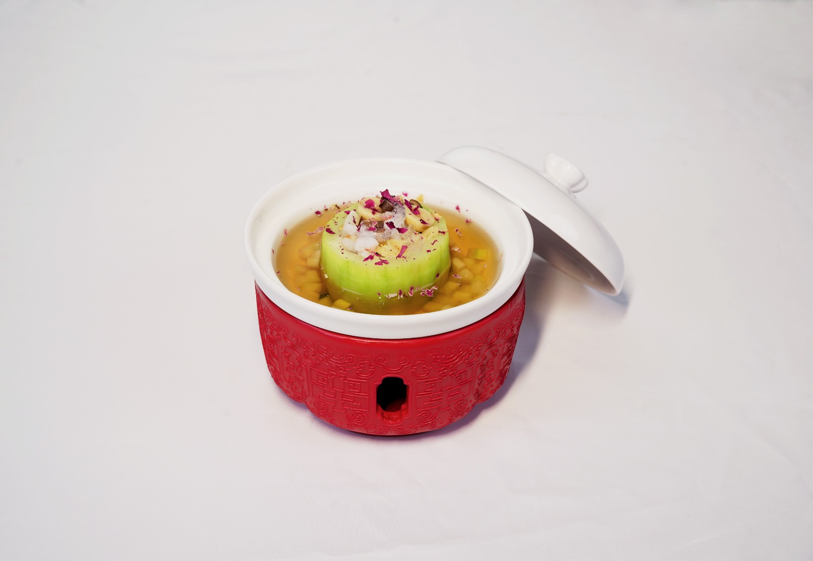 多款養生食療料理有不少以蛇入饌,如「燕窩蛇湯燉節瓜盅拼紫椰菜臘味粒蟹肉蛋白炒飯」,菜式以經典蛇羹作藍本,蛇湯以蛇骨、雞肉、豬肉等熬煮半日,再將節瓜挖肉,釀入帶子、蝦仁、瑤柱和祛濕的生熟薏仁等燉煮 2至3 小時,並加入潤肺滋陰的燕窩。菜式參考中醫建議,加入玫瑰花瓣,氣味清香,疏肝理氣而解鬱,適合春夏飲用,清補而不燥。配上加入紫椰菜及陳皮絲的臘味粒蟹肉蛋白炒飯,膳食纖維較高。另一道「太史蛇羹酥」將蛇羹湯水凝固成為啫喱肉凍,再以酥皮包起並炸至金黃色,外層酥香可口,又保留蛇羹的原汁原味。