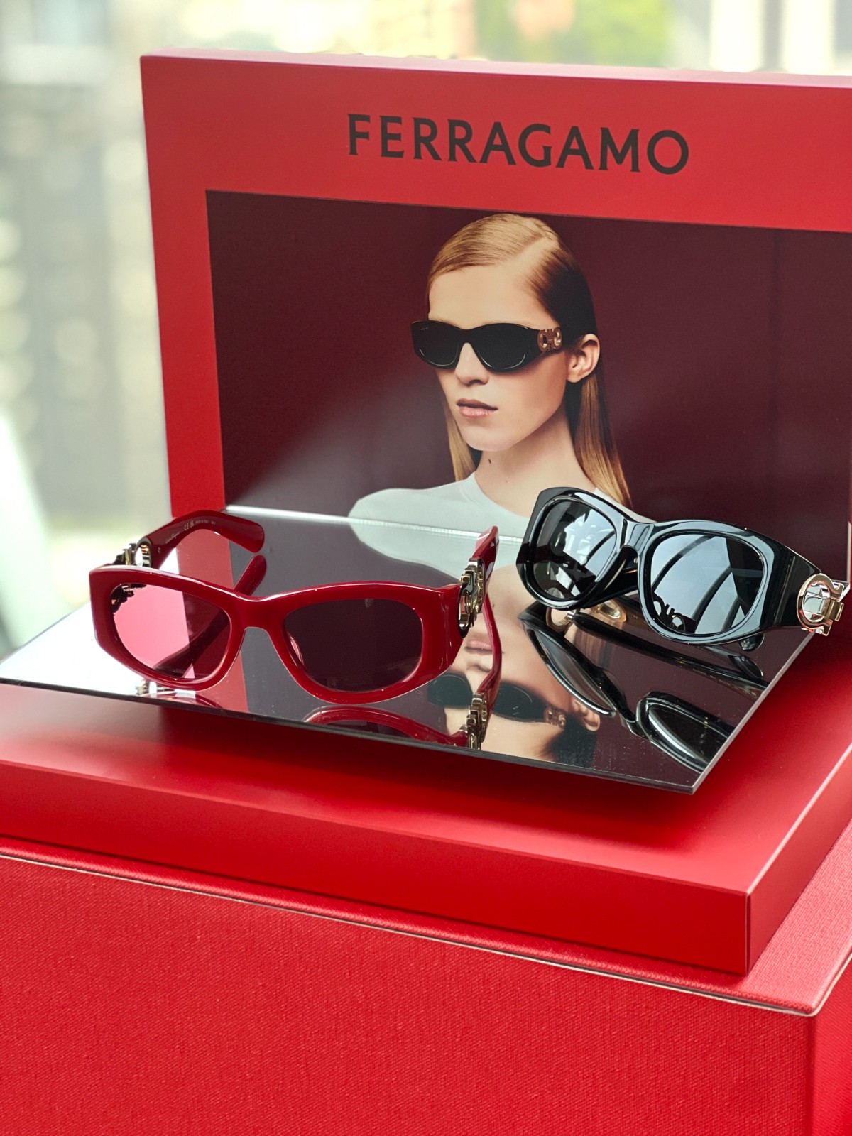 Ferragamo全新太陽眼鏡款式原創的標誌造型含獨特風格和態度,眼鏡有精美的裝飾和鮮明的細節展現工藝。充滿現代感的橢圓形太陽眼鏡SF1082S,採用大膽的塑料結構設計,兩邊鏡臂用亮眼且富個性的超大金色金屬鉸鏈。單色鏡片與鏡框顏色相呼應,外觀時尚。用上超輕金屬結構打造的SF303SL於鏡框飾以皮革,巧妙點綴設計簡約的眼鏡,纖細的鏡臂上綴以品牌的經典標誌,並配以單色、漸層或是鏡面鏡片,與同色的塑料鏡臂末端互相呼應,設計亮眼。
