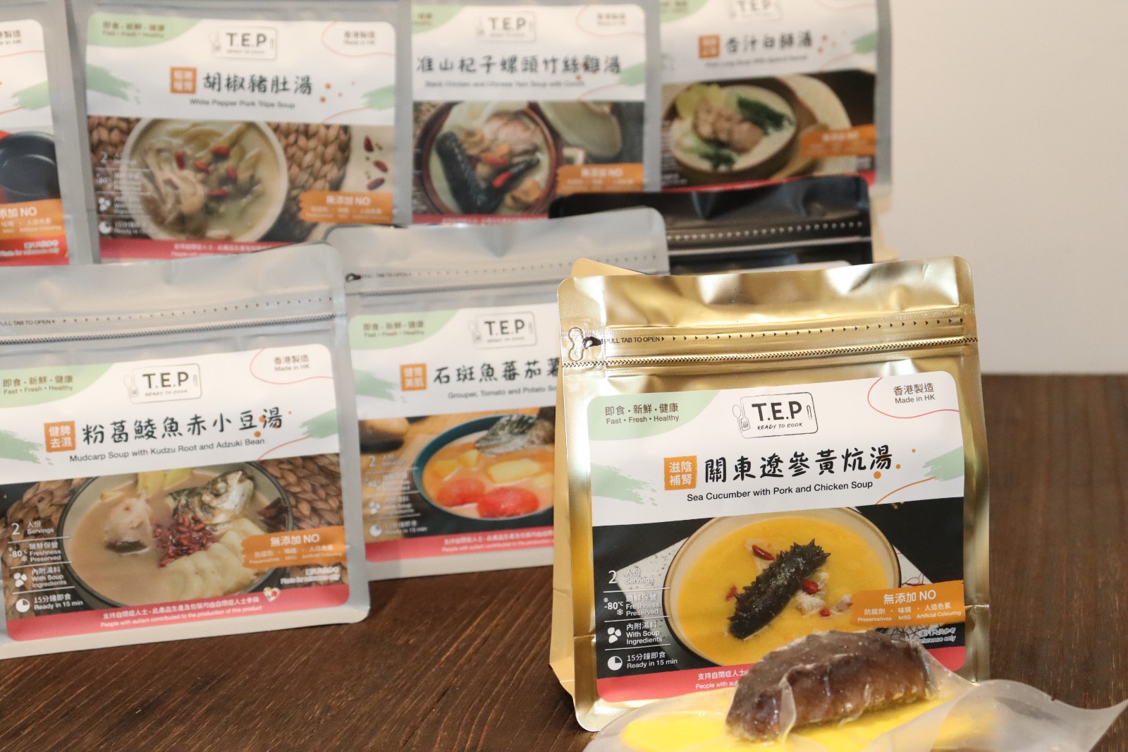 湯品種類豐富,涵蓋9種口味的西式及中式養生湯,食客可以平民價品嘗到松茸濃湯花膠、杏汁白肺湯、關東遼參黃炕湯等矜貴湯品,每款湯品加熱即可食用。自閉症青年也參與到湯品的整個生產過程中,讓他們通過食物這個人與人之間的共同橋樑,更好的融入社會。