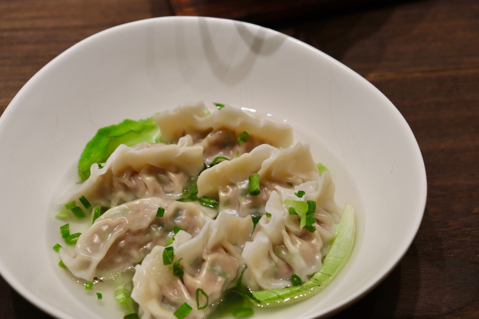 自家種植羽衣甘藍上湯豬肉餃,肉味香濃。
