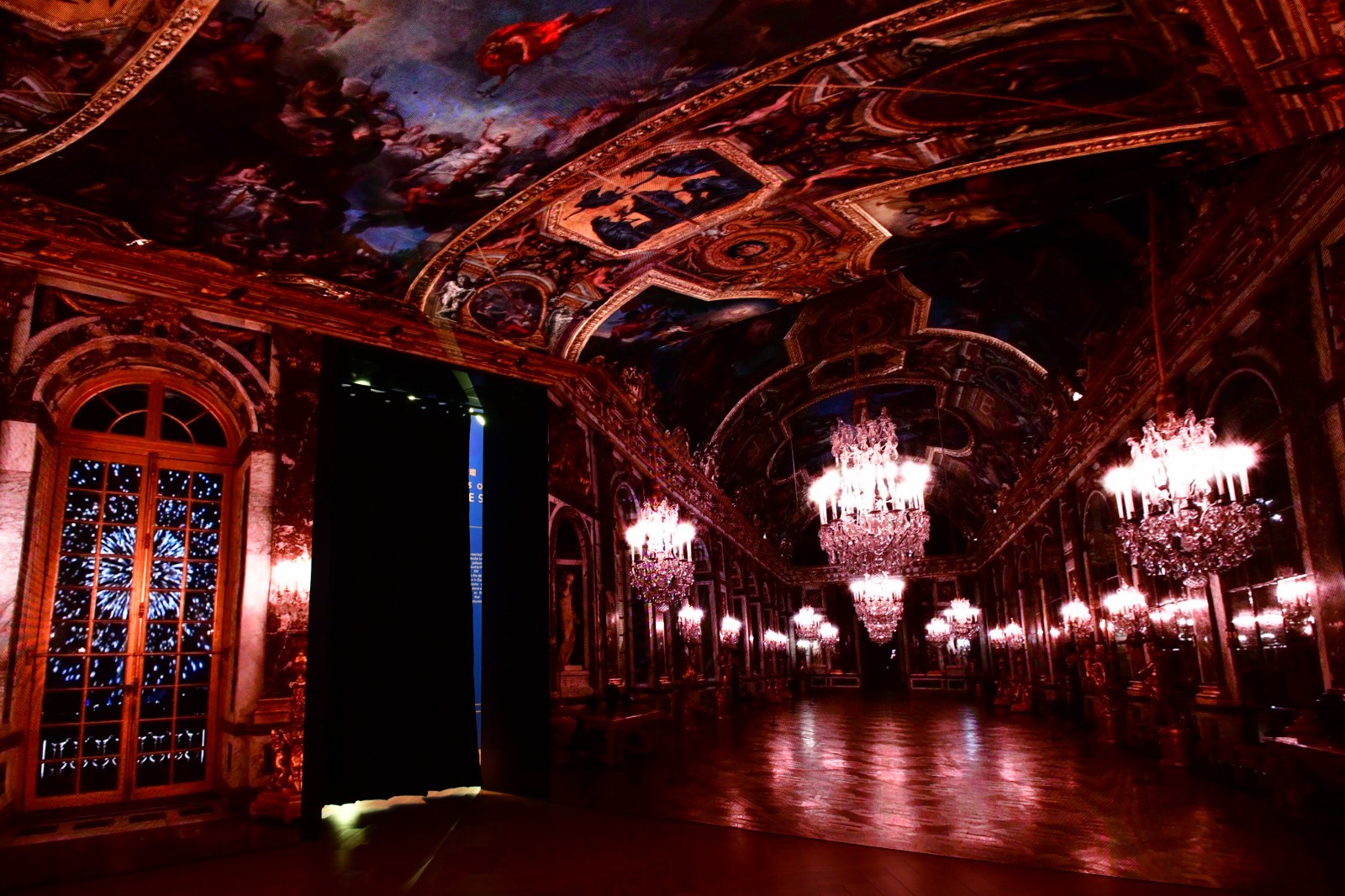 如今凡爾賽宮擁有2300個房間,其中最著名的莫過於原是國王和王后套房之間的一個大露台、後由建築師改建的「鏡廳」,內裏有357 面鏡子,天花板畫則由夏爾·勒布倫繪製。展覽重現了「鏡廳」,「輝煌璀燦」展區以360度電子屏幕,呈現包括虛擬鏡廳、戰爭廳、墨丘利廳、維納斯廳及王家歌劇院的室內景觀,讓人感受華麗壯觀的宮殿。鄧館長提醒,就算去到當地,宮殿內也有部分空間是不定期開放,是次能一覽五個廳房。
