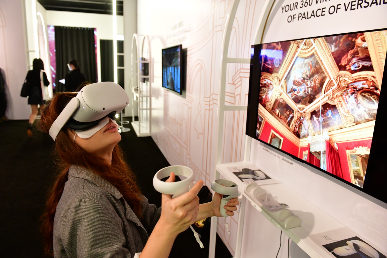 在「凡爾賽宮3D畫廊」戴上VR眼鏡即可細賞宮殿建築的細節。