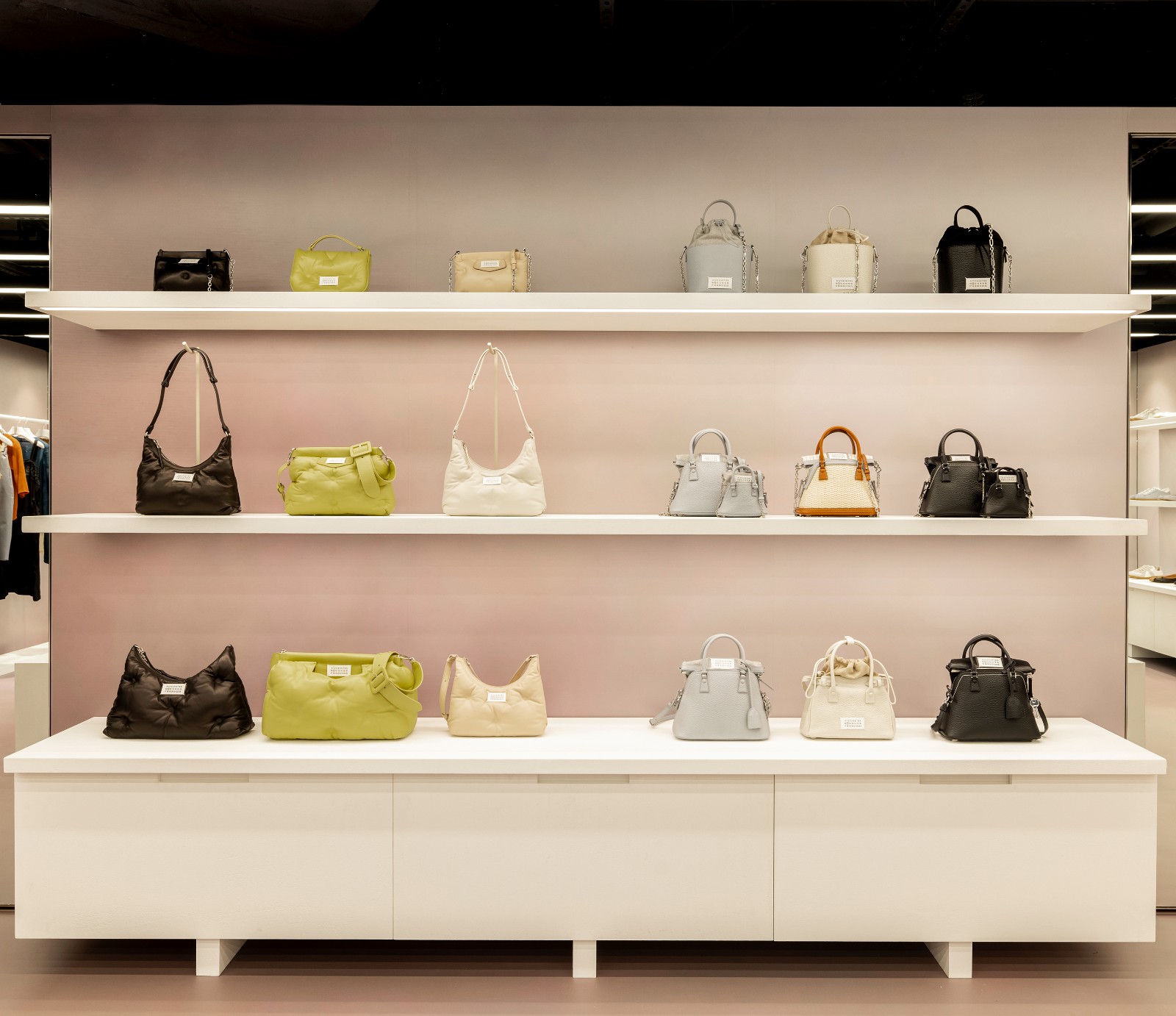 店內展示了最新春夏新品及多款經典服飾,包括手袋、鞋履及香氛產品,顧客可探索品牌無性別時裝概念和顛覆傳統的美學態度。最值得關注的是Glam Slam系列手袋,這款經典包款由John Galliano設計,手袋曲線流暢圓潤,如雲朵般蓬鬆輕盈的廓形,觸感如同軟綿枕頭般柔軟,因此亦被稱為「枕頭包」。 柔滑的小羊皮,包身正面飾以品牌經典標誌四角縫線,系列提供不同包款、尺寸和顏色選擇,滿足不同造型及場合所需。如Red Carpet Mini迷你鏈包小巧時髦,Flip Pocket斜孭包慵懶不羈, Shopping手提包實用有型,Hobo中號腋下包輕盈方便,是旅行通勤不二之選。手袋貫徹了品牌的無性別概念,適合所有人使用。