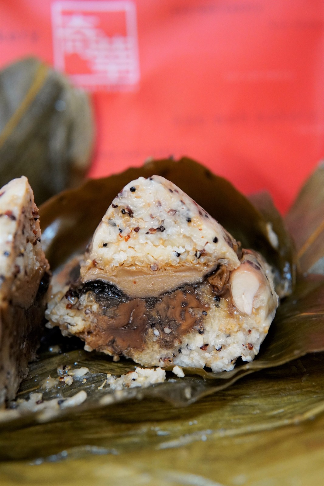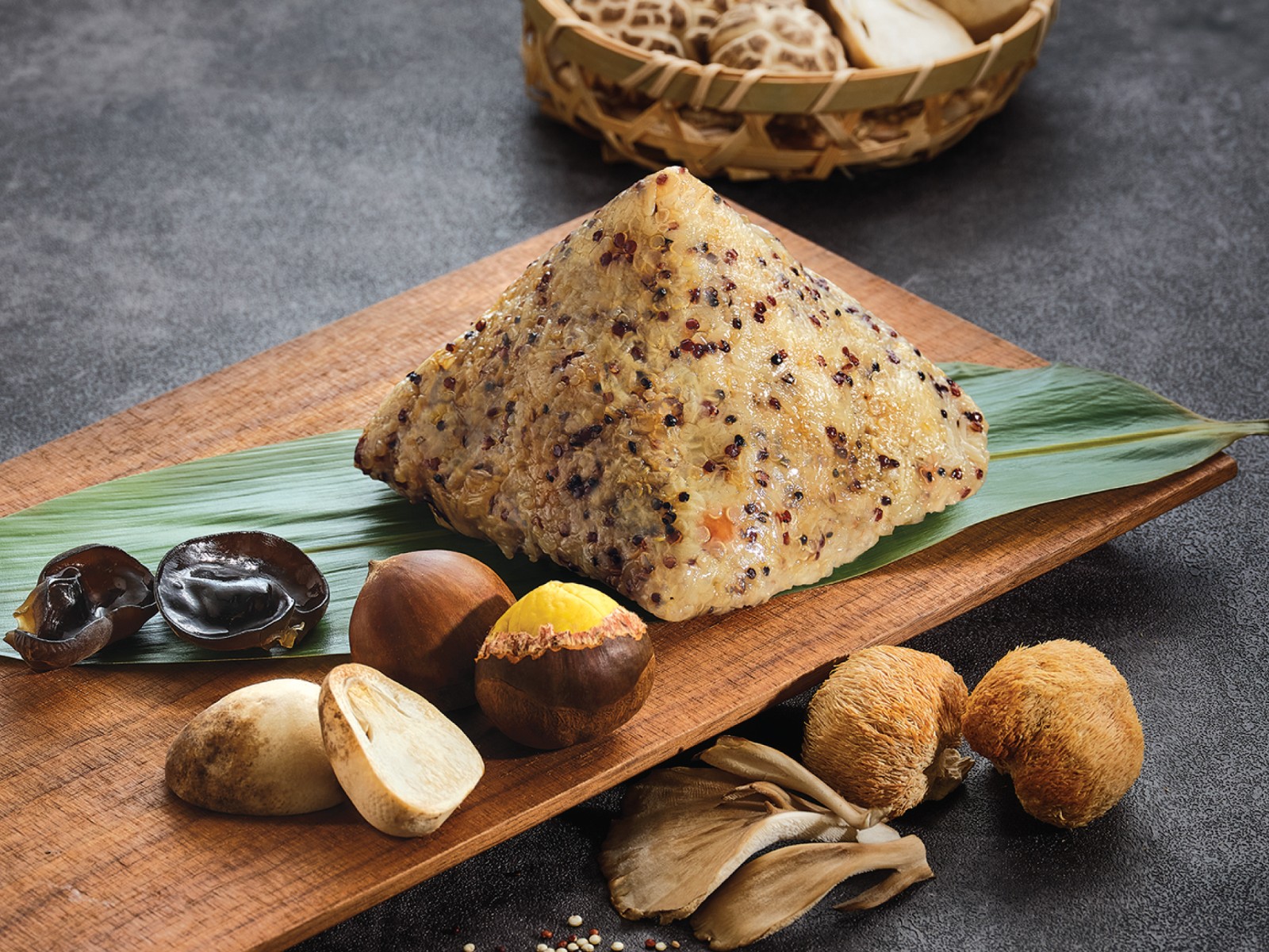 若是愛好養生及素食人士,可選富豪酒店推出的「至尊養生牛肝菌五色豆素糭」(HK$238),今年廚師升級選用法國產牛肝菌,令糭散發牛肝菌獨特的馥郁甘香,內有黃豆、綠豆邊、紅腰豆、眉豆及黑豆,含豐富膳食纖維、蛋白質及多種營養成分,帶來多重口感。