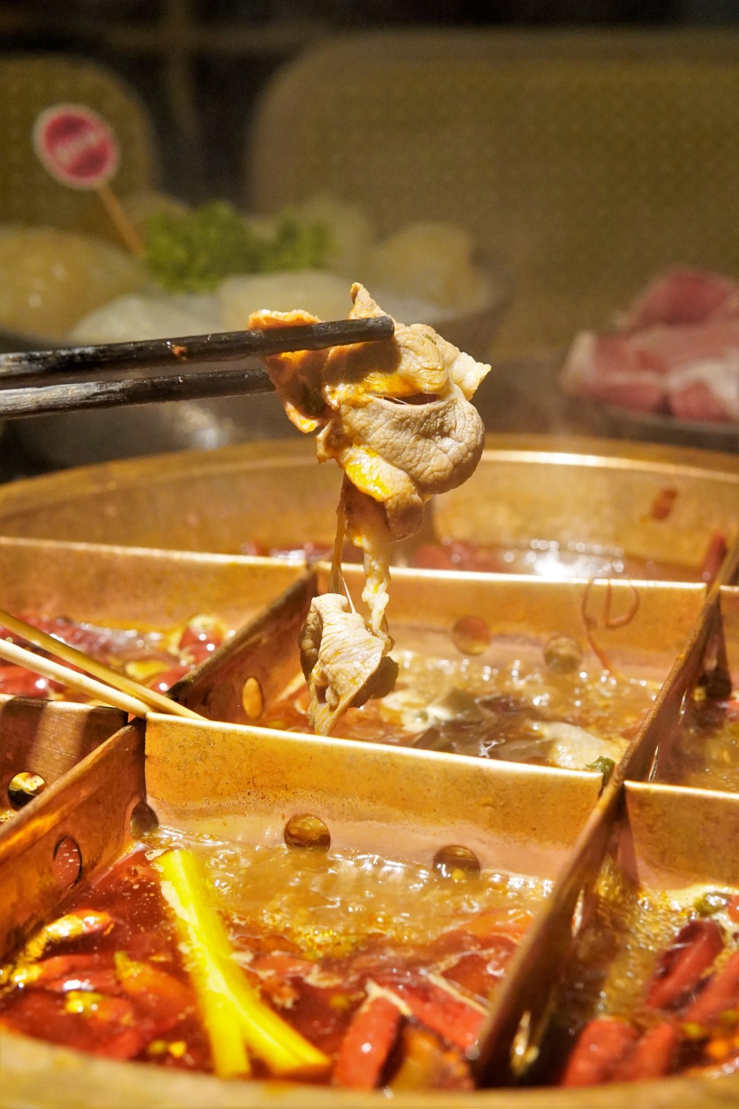 中心格適宜煮羊肉卷、肥牛等快熟食材。