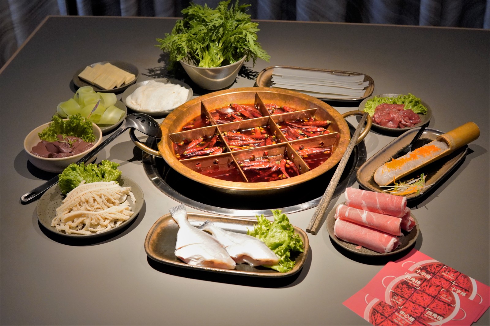 「九宮格麻辣大紅鍋」色澤艷麗、香氣濃郁,麻辣鮮香融於牛油的醇厚之中。
