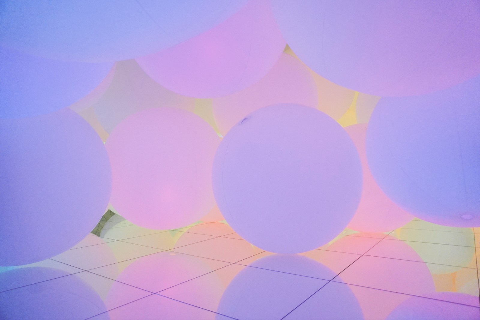 「擁有自我意識的變化空間,擴張的立體存在... ...」作品名字相當長,卻是筆者最喜歡的空間,內裏充滿了因風扇的風和氣壓轉變而自由浮動的球體,人變得特別渺小,當觀者觸碰球體時便會改變顏色,甚至整個空間都會產生顏色的變化。