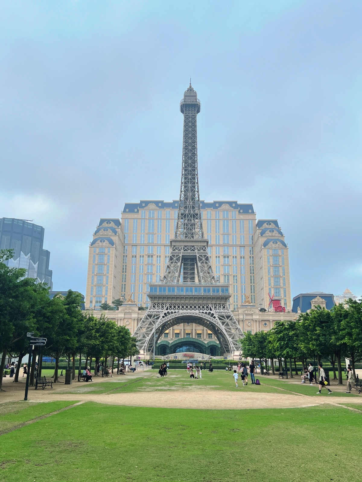 巴黎向來有藝術之都、文化之都、浪漫之都的美譽,尤其艾菲爾鐵塔更是其藝術創意與浪漫的象徵。澳門巴黎人酒店同樣瀰漫法式風情,酒店對面有種滿綠植和平坦的草坪的巴黎人花園,漫步於法式庭園、穿梭樹籬迷宮,在花園欣賞以艾菲爾鐵塔等比縮小一半建造而成的「澳門巴黎鐵塔」,隨手一拍就能拍出如畫般的景致。或可登上鐵塔7層與37層觀景台,將路氹金光大道或澳門美景盡收眼底。