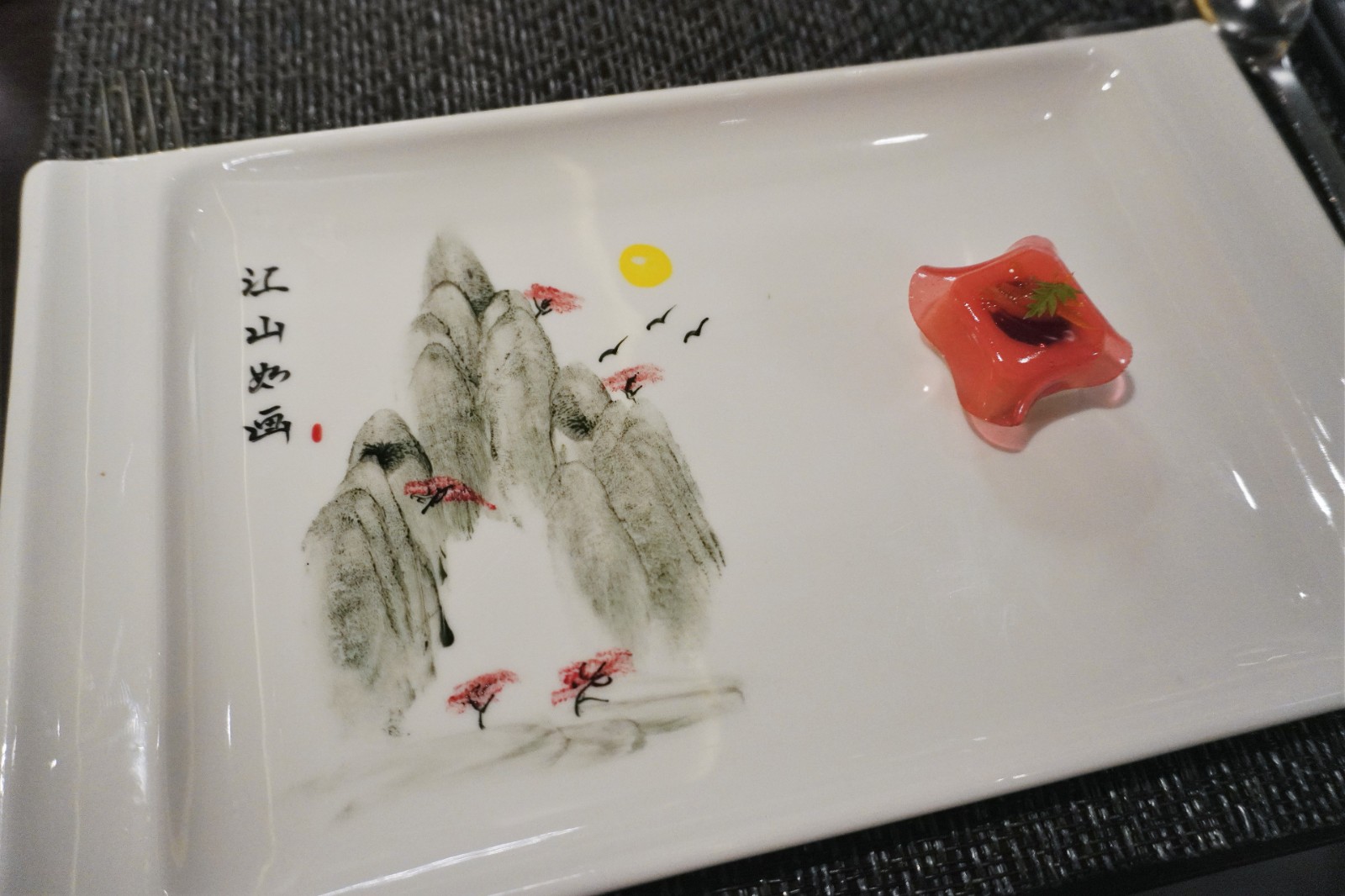 餐廳部分菜式的碟上繪寫山水書法,意境深遠。