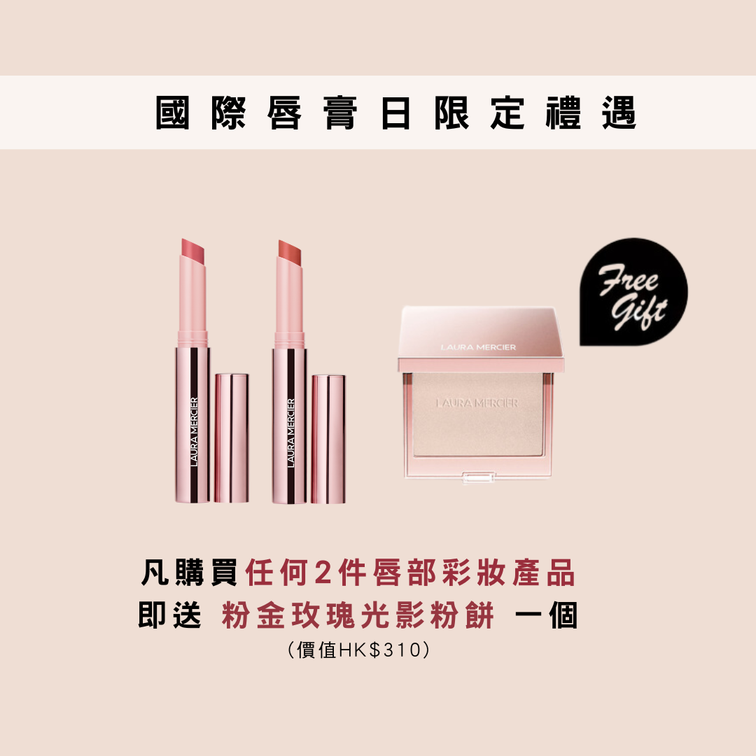 若在尋找滋潤、高飽和度的唇膏,推介Laura Mercier全新「高感緞光鎖色唇膏」(HK$280),持久鎖色不脫色。注入「柔光微珍珠粉末」,隨光線折射誘發飽滿光彩。水潤配方注入番石榴精萃油、維他命C及亞油酸,質地輕潤順滑,不易結塊或卡紋。唇膏共有10款時尚色調,包括知性優雅的甘栗玫瑰色Peek,及甜美優雅的玫瑰豆沙色Buzz,搽上可提亮好氣色。為慶祝國際唇膏日,即日至8月5日於門市購買任何2件唇部彩妝產品,即送粉金玫瑰光影粉餅一個(價值HK$310),以亮麗妝容迎接暑假。