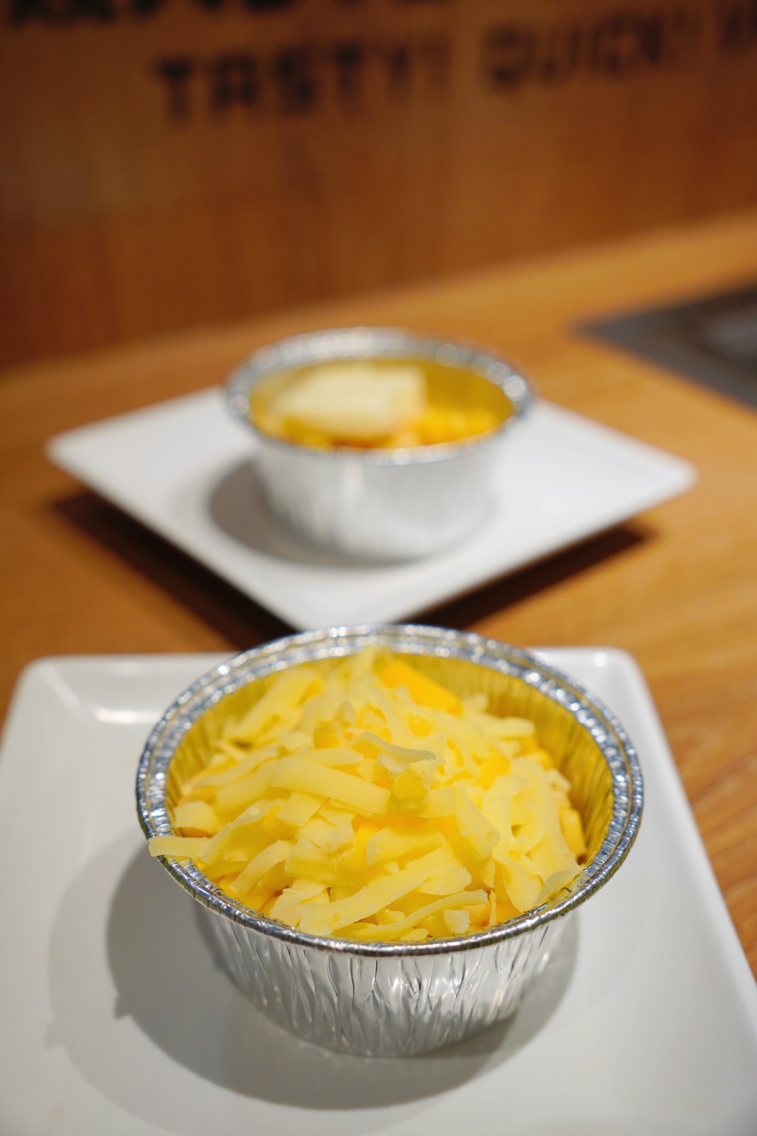 「牛油粟米」(後),HK$8 。「牛油芝士粟米」(前),HK$10。