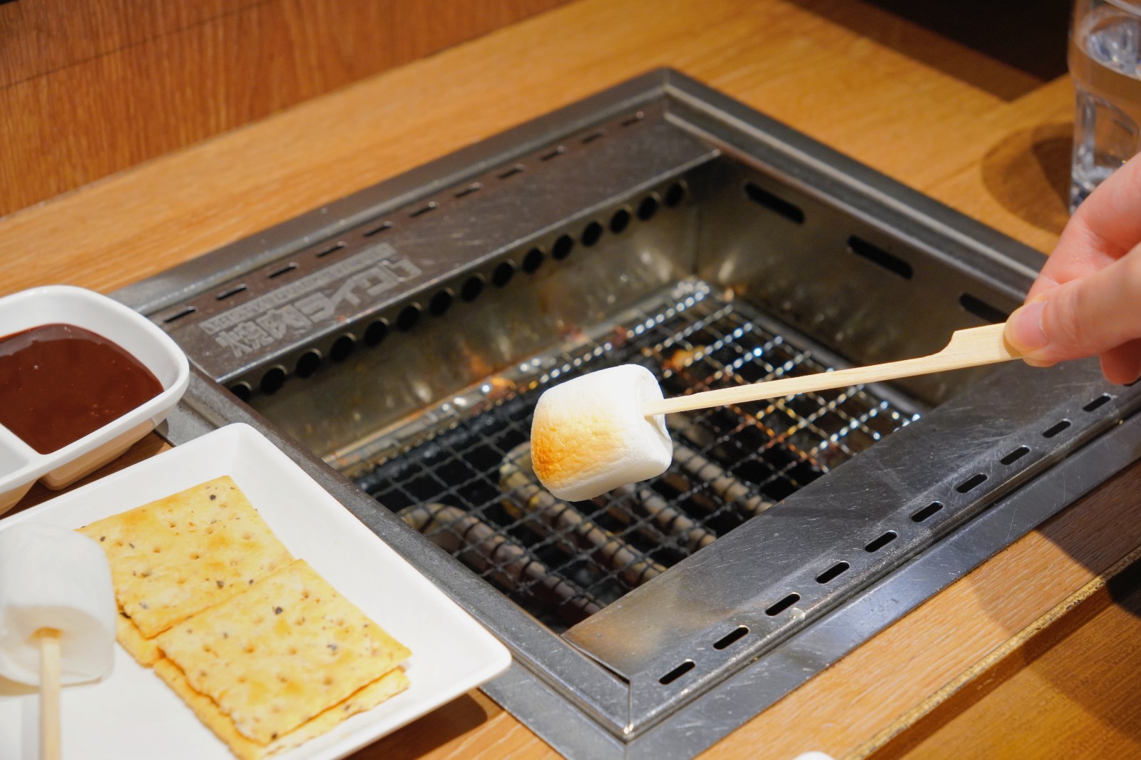 餐廳亦同步推出兩款無論大小朋友都喜歡的BBQ佳品,如「牛油粟米」、「牛油芝士粟米」,及甜品「S'more」烤棉花糖餅乾。「牛油粟米」燒製時,牛油在錫紙盤中慢慢融化,與粟米拌勻、裹上香濃牛油,味道香甜;「牛油芝士粟米」加入了包括馬蘇里拉、車打及帕馬森芝士三種芝士,奶香鮮甜交織,鹹香誘人。「S'more」則燒烤經典甜品,餐廳準備好棉花糖、餅乾及朱古力醬,食客將棉花糖放在4度火上燒約1分鐘,烤成金黃色、外層焦香內裏柔軟的狀態,再沾上絲滑濃郁的朱古力醬,夾在酥脆的餅乾間,就能自製「棉花糖三文治」,融化的棉花糖微微牽絲,以溫暖甜蜜的滋味為燒肉收尾。 (記者、圖片:Janice)