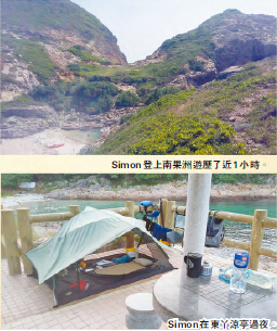 本刊早前報道Simon計劃由9月22日起,以16日時間,劃獨木舟到訪本港107個無人島,為使行程順利,8個多月來已試航10多次。結果他只花了12日時間便完成。原因是得到上天的眷顧,未有遇到難以越過的逆流;縱然天氣較預期熱,也沒有曬傷或出現脫水。加上採取「早起的鳥兒有蟲吃」策略,在清早6、7點風平浪靜時出發,一天的航程很多時在下午2、3點就完成,有時還更早,他索性一天內完成兩天航程,這情況發生過3次,如第7天由白沙灣童軍中心劃往果洲群島,原打算在那裏露宿,但遊畢果洲都只是上午11時多,於是完成翌日到石澳的航程。